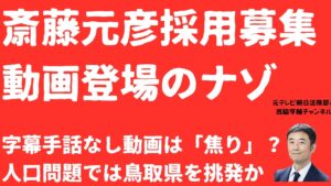 【ナゾ】斎藤元彦「採用募集動画」に自撮り登場!字幕も手話もない「無配慮」動画の一方で県職員応募者数は?県人口減少では鳥取県知事挑発か?
